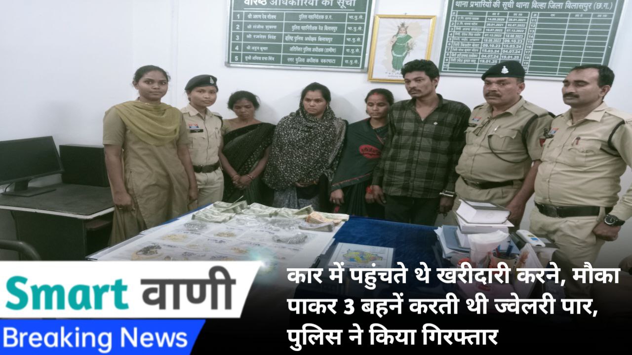 Crime News Bilaspur:कार में पहुंचते थे खरीदारी करने, मौका पाकर 3 बहनें करती थी ज्वेलरी पार, पुलिस ने किया गिरफ्तार