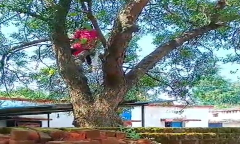 Surajpur News:प्रेमी की गिरफ्तारी की मांग पर युवती का ड्रामा, पुलिस चौकी परिसर में पेड़ पर चढ़ी