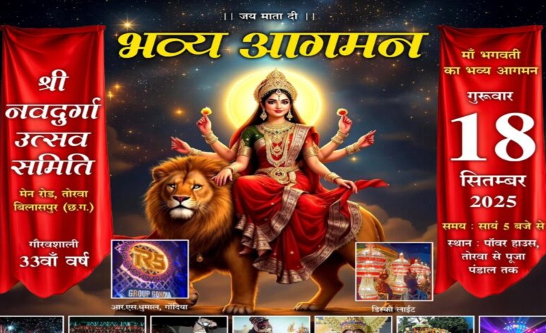 BILASPUR NEWS.श्री नव दुर्गा उत्सव समिति तोरवा के तत्वावधान में आगामी 18 सितंबर, गुरुवार को माता रानी का भव्य आगमन शोभायात्रा निकाली जाएगी। आयोजन समिति ने समस्त बिलासपुर वासियों, श्रद्धालुओं एवं कंटेंट क्रिएटर्स को इस ऐतिहासिक क्षण का साक्षी बनने के लिए आमंत्रित किया है।