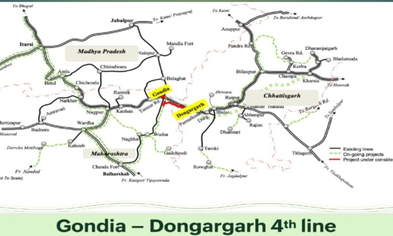 इनमें से एक परियोजना है — गोंदिया–डोंगरगढ़ चौथी रेल लाइन, जिसकी लंबाई 84 किलोमीटर और अनुमानित लागत ₹2,223 करोड़ है। यह लाइन महाराष्ट्र और छत्तीसगढ़ राज्यों से होकर गुजरेगी और देश के पूर्व, मध्य और पश्चिमी क्षेत्रों को जोड़ने वाले एक प्रमुख यात्री एवं माल यातायात मार्ग पर स्थित होगी।