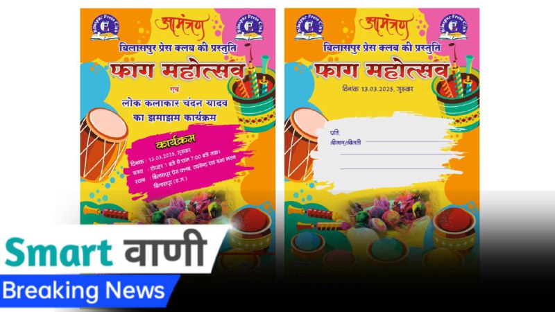 Holi News Bilaspur: बिलासपुर प्रेस क्लब का फाग महोत्सव 13 मार्च को, फाग मंडलियों का निशुल्क रजिस्ट्रेशन शुरू