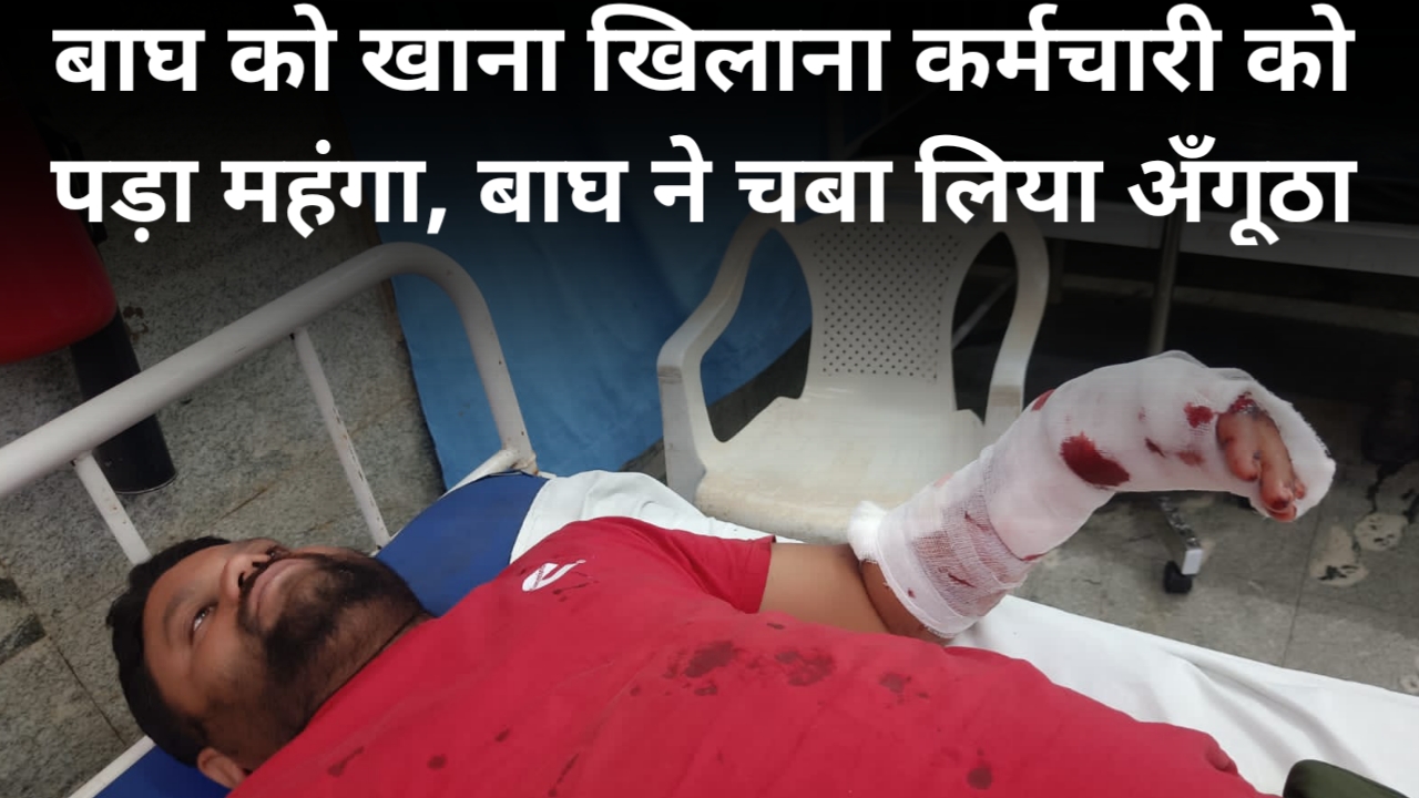 इसी दौरान शेर को खाना खिलाते समय शेर ने कर्मचारी का हाथ ही अपने जबड़े में दबाने का प्रयास किया और कर्मचारी जब तक समझ पाता तब तक उसका अंगूठा शेर का खाना बन गया था। कर्मचारी काफी देर गया और शोर मचाया। वह उपस्थित लोग पहुचे और उसे अस्पताल ले के गए। उसका उपचार चल रहा है।