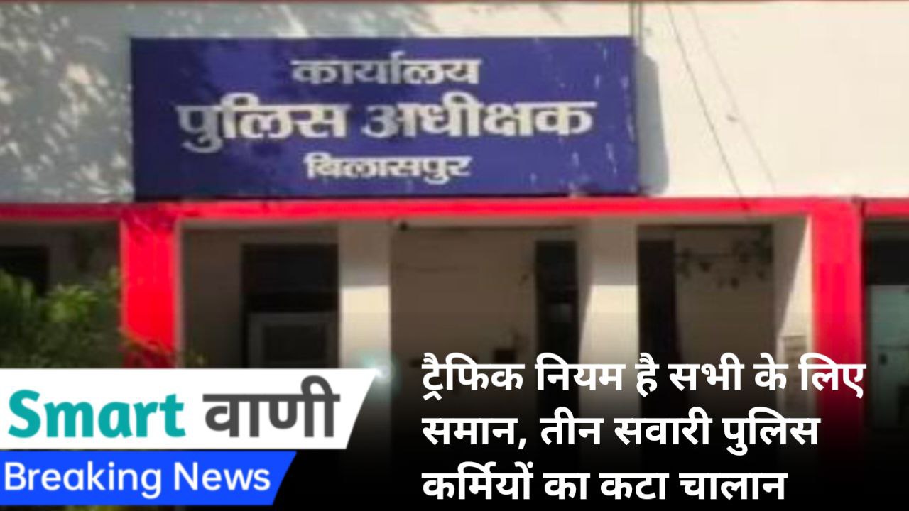 BILASPUR TRAFFIC POLICE NEWS. शहर में यातायात के नियमों का उल्लंघन करने वालों की कमी नहीं है। वहीं कई बार देखा जाता है कि पुलिस कर्मि भी तीन सवारी वाहन चलाते है। ऐसे में उन्हे पुलिस विभाग का है सोचकर छोड़ दिया जाता है। लेकिन अब पुलिस कप्तान ने इस पर भी सख्ती दिखाई है और तीन सवारी पुलिसकर्मियों का भी चालान काटने के निर्देश दिए है। इसी के तहत तीन सवारी वाहन पर चलने वाले पुलिसकर्मियों का चालान काटा गया है। पुलिस कप्तान का कहना है कि हर कोई एक समान है चाहे व पुलिस हो या आम जनता। इस तरह से वे नागरिकों को जागरूक करना चाहते हैं।